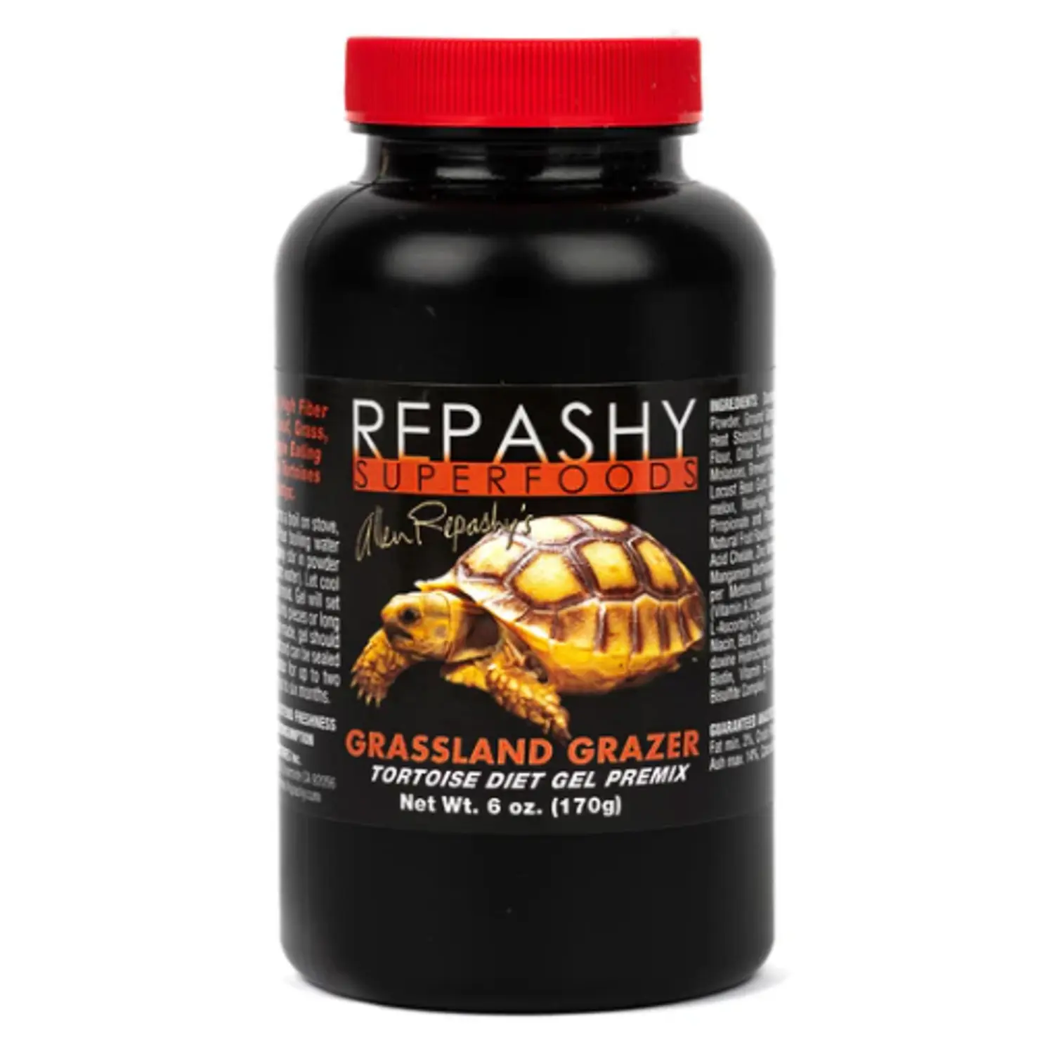 Repashy Grassland Grazer – 6 oz is a nutritionally balanced, low-protein and high-fiber gel formula specially formulated for herbivorous and semi-herbivorous reptiles like tortoises and Uromastyx. Designed to replicate their natural grassland diets, it includes wholesome, plant-based ingredients such as dandelion powder, nopal cactus powder, ground grass, alfalfa meal, hibiscus flower, and seaweed, fortified with essential nutrients including calcium, vitamins, trace minerals, and beta carotene.